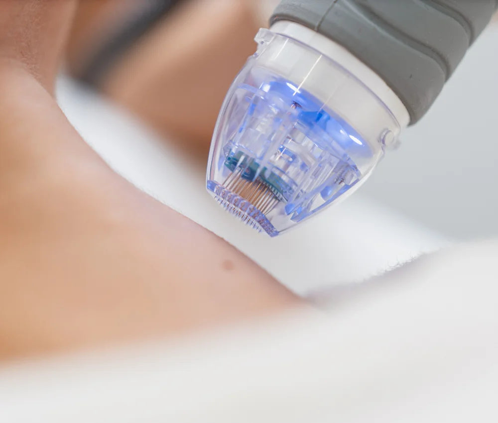Typically, the treatment involves a device with an array of insulated fine needles designed to puncture the top layer of skin, about up to 3 millimeters deep. High-intensity radiofrequency energy is applied in a fractional pattern through microneedles to trigger collagen and elastin production.